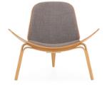 “CH 07”. Tre-benet skalstol af lamineret eg, sæde og ryg betrukket med brunt/grå uld. Designet 1963. Udført og mærket med label hos Carl Hansen & Søn.