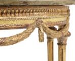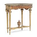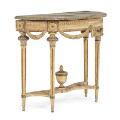 Gustaviansk konsol af forgyldt træ med plade af Öland sten. Stockholm, 18. årh.s slutning. H. 80. B. 91. D. 48.