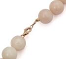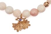A coral- and pearl necklace set with numerous beads of polished coral and cultured fresh water pearls, pendant and beads of 18k rose gold, pendant set with a circular-cut blue stone. Bead/pearl diam. 9.5–13 mm. L. 45 cm.