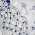 “Musselmalet Helblonde”: En samling serveringsdele af porcelæn, dekoreret i underglasur blå. Royal Copenhagen. (14)