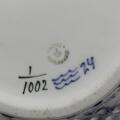 Bestående af: Oval frugtskål nr. 1002, kageopsats nr. 1023, muslingeformet asiet nr. 1074, sukkerskål nr. 1113, flødekande nr. 1032, lavt bæger nr. 1015, højt bæger nr. 1016, 3 asietter nr. 1004, 2 askebægre med tændstikæskeholder nr. 1072, skål nr. 1019 og lågskål nr. 1100.