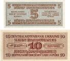 Ukraine, under German occupation, 5, 10, 100 and 200 Karbowanets 1942, Puck 51, 52, 55, 56, in total 4 pcs