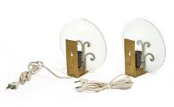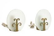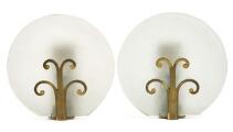 A pair of patinated brass wall lamps. Raw glass shades. Made approx. 1930s. H. 20,5. (2)
