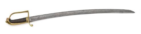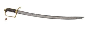 Rare Danish sabre for Christians Guard in Flensborg with grooved leather-covered grip and approx. 61.3 cm. long single-edged blade marked on one side with CHRISTIANS GARDE and on the other with FLENSBURG and the date for the guard's establishment 31 JULY 1799.
