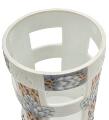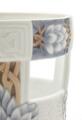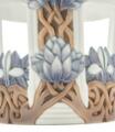 “Roman incense burner” of porcelain, decorated in colors, openwork sides with stylized flowers, braided branches and geometric pattern in light relief. Signed monogram, 1071/5. Bing & Grøndahl, 1905. H. 26.5 cm.