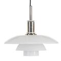 “PH 4.5/4”. Pendant with chromed metal socket house. Multi layer opal glass shades. Frosted glass bottom bowl. Manufactured by Louis Poulsen. Diam. 45 cm.