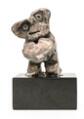 “Hjertemand”. Signeret LS, 14/99. Forsølvet tin på base af poleret granit. H. inkl. base 16 cm.