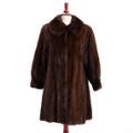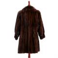 Brown mink swinger with collar and cuff sleeves, hooks, two pockets and brown lining. Size 36–38. L. app. 95 cm.