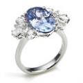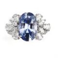 Ceylon safir- og diamantring af 18 kt. hvidguld prydet med oval facetslebet ceylon safir på ca. 6.55 ct. flankeret af talrige dråbe- og marquiseslebne diamanter på i alt ca. 1.18 ct. Farve: River (D-E). Klarhed: VVS. Str. 54. Ref. nr. 186007.