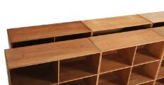 Wear due to age and use. Marks, scratches and damp marks. Colour difference. One bookcase with hole in the backing.