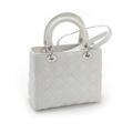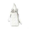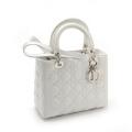 “Lady Dior” taske af hvidt quiltet læder med to hanke, lang aftagelig strop, en indvendig lynlåslomme og brunt for af stof. H 20 x B 24 x D 11 cm.