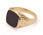 A carneol ring set with a polished carneol, mounted in 14k gold. Weight app. 6 g. W. 15.5 mm. Size 60.