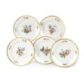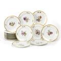 17 porcelain plates, “Juliane Marie” model with cartouches in relief, decorated in colors and gold with flowers. 11/12013. Juliane Marie mark. Diameter 23 cm. (17)