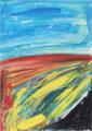 Abstrakt landskab. Sign. GM. Akryl på papir. Lysmål 69×49.