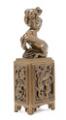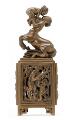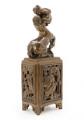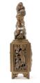 “Eventyrskrin” (Fairy Tale Box). Casket of patinated bronze pierced with stylistic figures in relief. Cover depicting a female centaur lifting a small child. Signed Kai Nielsen and stamped DK. H. 34 cm. L. 13 cm.