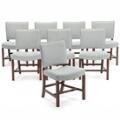 “The red Chair” Set of eight chairs of mahogany. Seat and back upholstered with striped white/light blue fabric. Model 4751. Formgivet 1933. Made by Rud. Rasmussen Cabinetmaker's. (8)