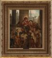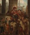 Italiensk gadeparti med tiggerdrenge. Usigneret. Olie på lærred. 30,5×25,5 xm.
