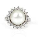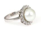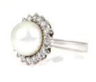 Perle- og diamantring af 18 kt. hvidguld prydet med South Sea kulturperle omkranset af talrige brillantslebne diamanter. Perlediam. ca. 12,5 mm. Str. 54,5.