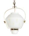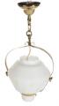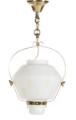 Brass ceiling lamp, opal glass shade decorated with stylized foliage in yellow glass surround. 1950s-60s. H. 58 cm.