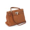 “Kelly” 35 taske af lysebrun Togo læder med palladium beslag, hængelås, nøgle, nøglesnor og skulderrem samt tre indvendige lommer. 2006.