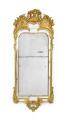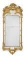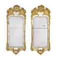 A pair of large Swedish Rococo giltwood mirrors both with mirrored borders and carved with rocailles and foliage. Stockholm, c. 1760. H. 177 cm. W. 70 cm. (2)