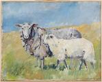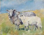 Landscape with sheeps. Signed Harald Hansen, 46. Oil on canvas. 76×95 cm.