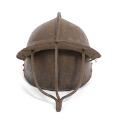 Rust marked, hole in the shell, the inner lining missing. one chin piece is missing.