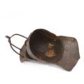 European most likely English c 1640 civil war lobstertailed harquebusier helmet. The hammered, 2-piece steel lobstertail helmet with hinged, 3-bar steel visor with integral brim. One-piece neck guard with decorative rivets. Crimped edges. one loose chin piece comes with the helmet. C 30×45 cm.