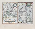 “Daniae Regni Typvs”. Map of Denmark in two parts. 1595. Handcoloured etching. Visible size 45.5×55.5 cm.