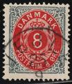 1875. 8 øre, 55.print. Pos. A55 with ISOLATED NORMAL FRAME. Most beautiful copy with upright lap-canc. VEJLE 25.9. AFA +1.600. Cert. Nielsen [ 25 ] [ ⊙ ]