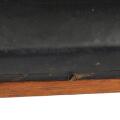 Skammel med stel af mahogni, sæde betrukket med sort skind. Udført 1930érne.