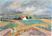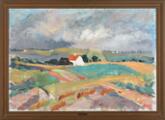 Landskab med huse. Sign. Lyhne 35. Olie på lærred. 70×100.