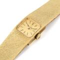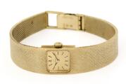 Wristwatch of 14k gold, ref. 711.1282. Mechanical movement with manual winding. 1960s. Integrated bracelet of 14k gold. Circumference approximately 17 cm. Diameter 18 mm. The watch weighs approx. 42.1 g.
