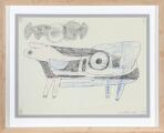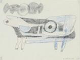 “Figurer vagande mot varandre”, (Figurer vandrer hen mod hinanden), 1951. Signeret A. Østerlin. Farvekridt på papir. Bladstørrelse 27×36 cm.