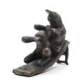 “To på en rutschebane”. Stamped T.H. Patinated bronze. Unique. H. 11.5 cm.