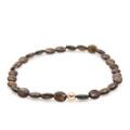“Smilet” lås af 14 kt. guld og hvidguld, kæde prydet med smykkestene medfølger. Lås diam. 10 mm. L. 40 cm.