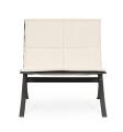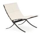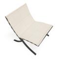 “Tangochair”. Lounge chair af antracitfarvet stål med lameller af rustfrit stål. Løs hynde betrukket med lyst, tuftet møbelstof. Designet 1964. Udført hos JV Holding.