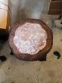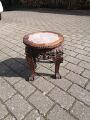 Chinese carved low table of hardwood with floating top of marble. Early 20th century. H. 40 cm. Diam. 35 cm.