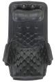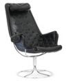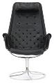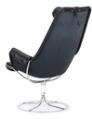 “Jetson”. Lænestol med drejestel af forkromet stål. Sider, sæde, ryg samt nakkestøtte betrukket med sort skind. Udført og mærket hos DUX.