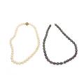 A clasp of 18k gold with a satin finish. Diam. 13 mm. Accompanied by two pearl necklaces each set with numerous cultured fresh water pearls. Pearl diam. app. 7–10 mm. (3)
