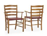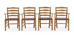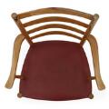 “The Church Chair”. Set of four beech armchairs. Seat upholstered with red leather. Designed 1936. Manufactured by Fritz Hansen.