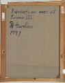 “Variationer over tema III”, 1991. Sign. med titel og datering på bagsiden. Olie på lærred. 93×73. Uindrammet.