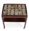 A mahogany serving cart with underlying shelf. Model 154. Manufactured and marked by Haslev Møbelsnedkeri. 1960s. H. 57. L. 70. W. 47 cm.