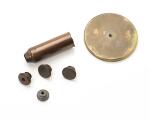 Reservedele bestående af fire topskruer af bruneret messing, låg af messing samt “skorsten” af bruneret messing. Udført hos Louis Poulsen 10930'erne. (6)
