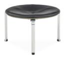 “PK 33”. Skammel med stel af stål. Cirkulær hynde betrukket med sort skind. Formgivet 1958. Udført og mærket hos Fritz Hansen, 2008.