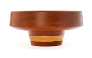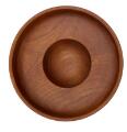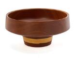 A circular, footed solid staved teak bowl. Marked Kay Bojesen, Denmark. Foot with cane. H. 11.3 cm. Diam. 24 cm.