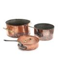 Tre franske kobbergryder. Delvis stemplet Dehillerin, Paris. 20. årh.s begyndelse. H. 8,5–22. Diam. 31–46 cm. (3)