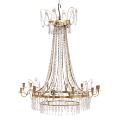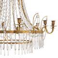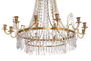Prismekrone med stel af forgyldt bronze med 12 svungne lysarme, behængt med prismer i kæder, top monteret med el. Louis XVI form, 19. årh. H 100. Diam. 77.