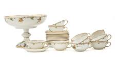 “Butterfly service” 12 porcelain cups and saucers and a tazza decorated in enamel colours and gold with butterflies. 19th-20th century. Royal Copenhagen. (13)