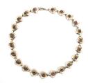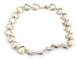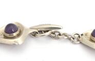 Halskæde af sterlingsølv prydet med talrige cabochonslebne lilla glassten. B. 16 mm. L. 43 cm.
